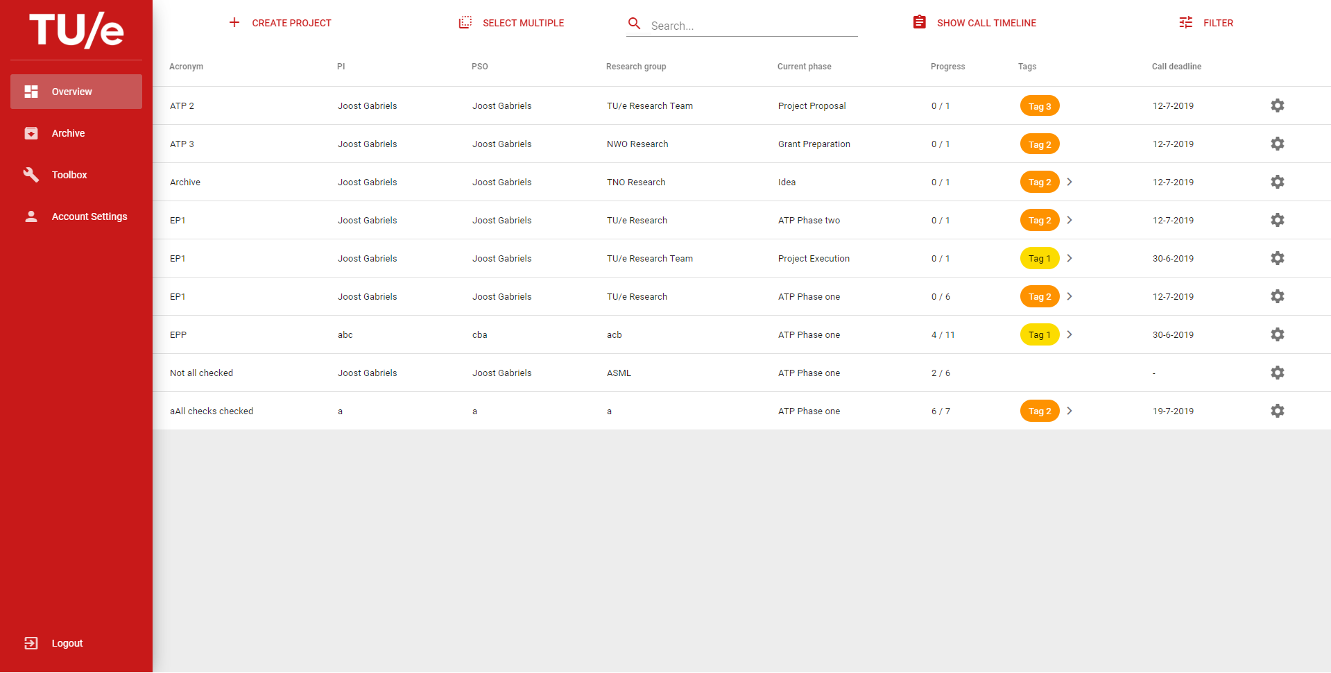 This is my bachelor’s end project, where we had to create a project manager for research funding for researchers at the TU/e.